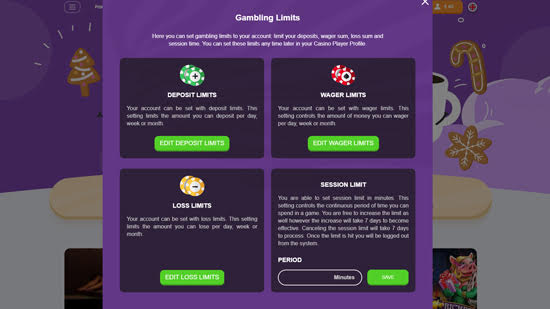 Cookie Casino ist sich der Tatsache bewusst, dass einige Spieler ihre Grenzen überschreiten. Sie spielen verantwortungslos und spielen größere Beträge, als sie sich leisten können, zu verlieren. Finanzschulden sind aufgebaut oder viel schlimmer. Aus diesem Grund verfügt das Online-Casino über eine spezielle Funktion, bei der die Spieler die Grenzen festlegen, mit denen sie spielen möchten. Alle Optionen unten anzeigen: